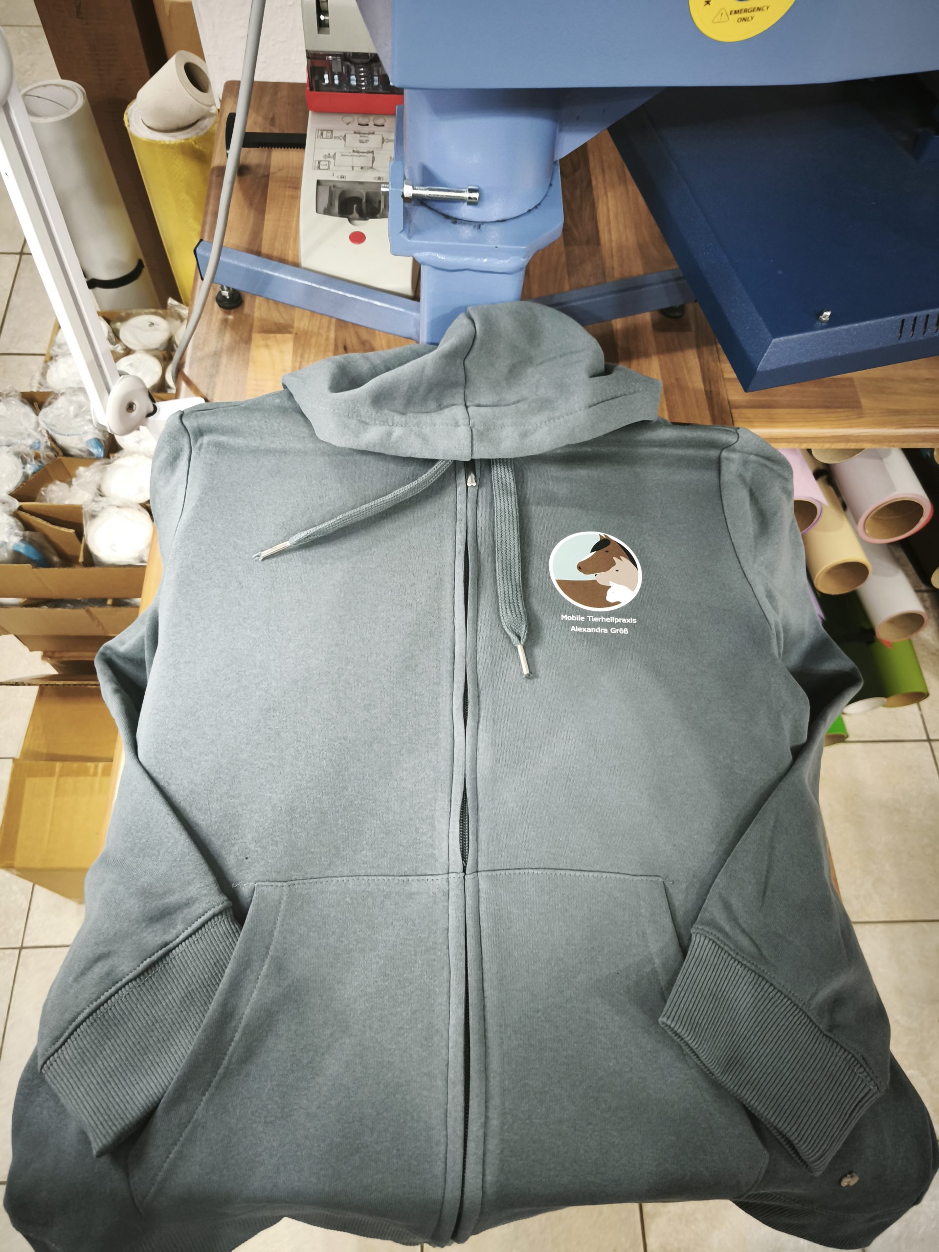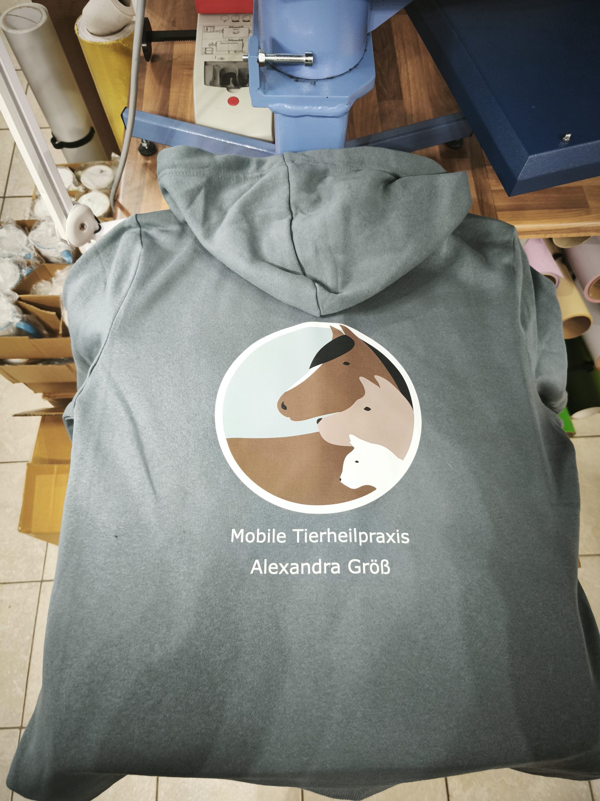 Heute durften wir die neue Arbeitskleidung fĂŒr die Mobile Tierheilpraxis Alexandra Gröà fertigstellen. Die gemĂŒtlichen Kapuzenjacken wurden mit unserem hochwertigen DTF-Druck veredelt. Das Ergebnis: Brillante Farben und ein Logo, das lange hĂ€lt â perfekt fĂŒr den tĂ€glichen Einsatz bei den tierischen Patienten! đŸđđ