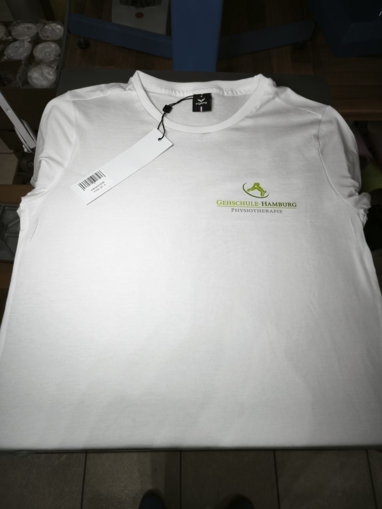 Heute durften wir wieder zeigen, was moderner DTF-Druck leisten kann! FĂŒr die Gehschule Hamburg haben wir hochwertige T-Shirts mit einem sehr filigranen Logo auf der Brust bedruckt. Genau solche feinen Details sind die perfekte Herausforderung fĂŒr unseren DTF-Drucker â und das Ergebnis kann sich sehen lassen đđ