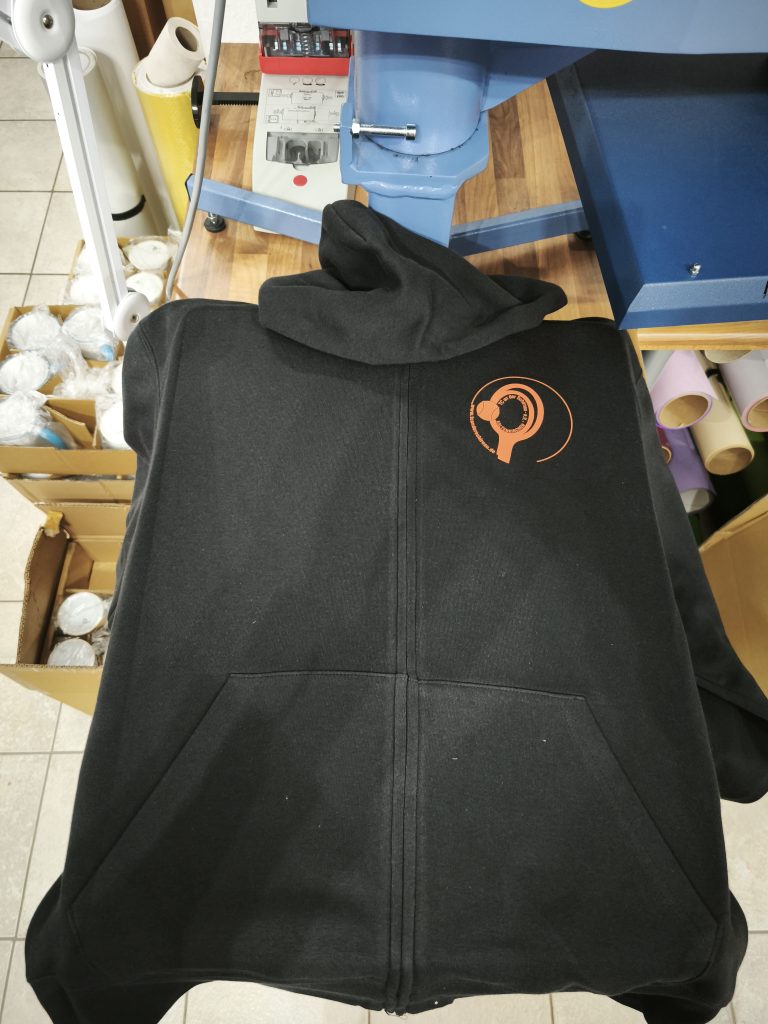 Technik: Wir haben uns für den langlebigen Logodruck mit hochwertiger Flexfolie entschieden, um eine strahlende Optik und hohe Waschbeständigkeit zu gewährleisten.