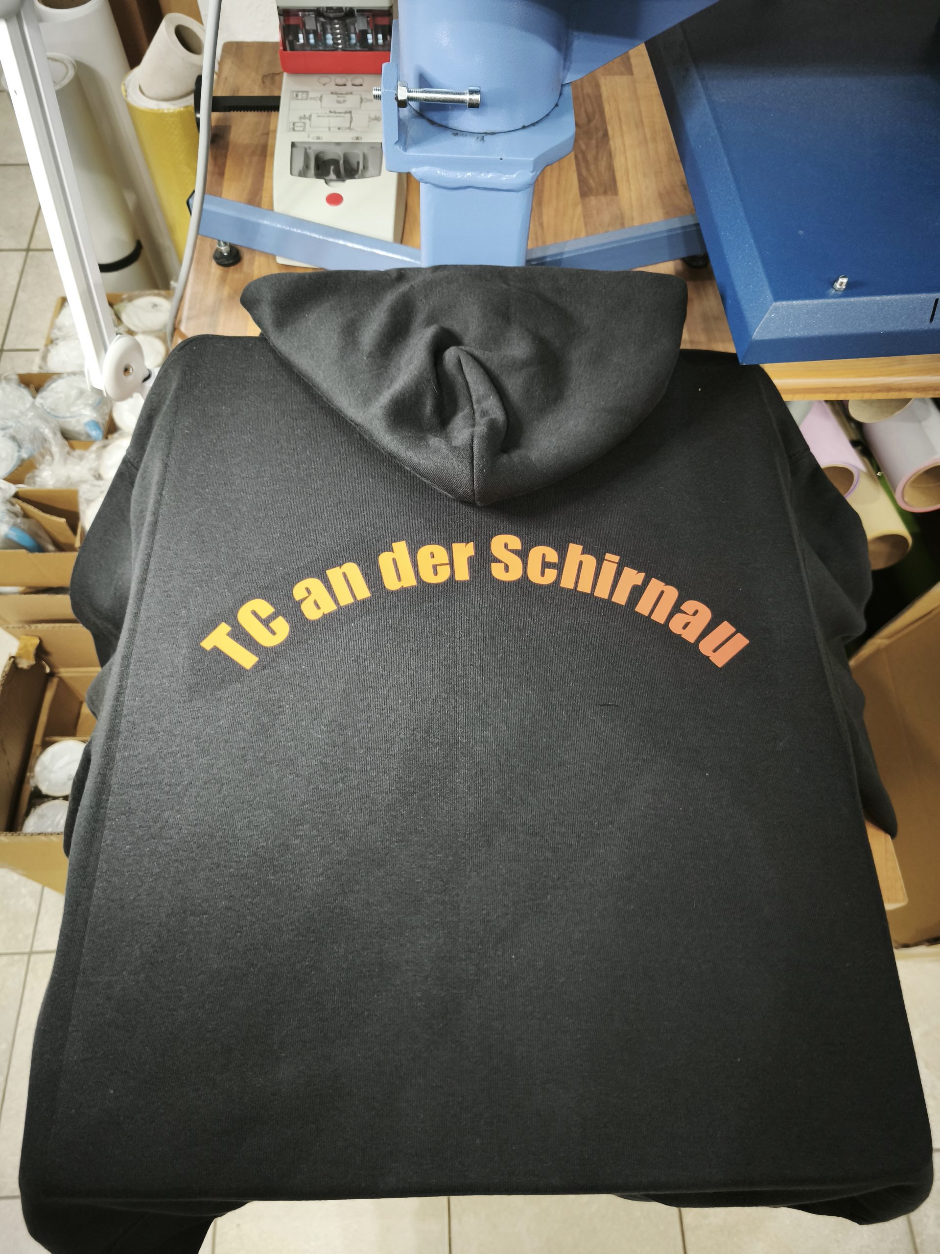 Ein toller Tag in unserer Druckerei! Wir freuen uns, heute die neue Teamkleidung für den TC an der Schirnau Kaltenkirchen e. V. fertiggestellt zu haben. Pünktlich zur kalten Jahreszeit können die Mitglieder nun in neuen, hochwertig bedruckten Sweatjacken und Hoodies auf und abseits des Platzes glänzen.